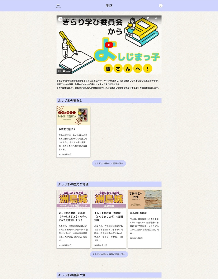 きらりよろずねっと ウェブコンテンツ制作・動画企画・編集 https://kirari-yorozu.net/ クライアント:特定非営利活動法人 きらりよしじまネットワーク様 リリース:2023 ご依頼内容 a-blog cmsを使ったウェブサイト改修ウェブコンテンツ編集映像企画映像編集動画サイト掲載プロジェクト管理 映像企画・指導に東京の株式会社折笠ビデオエンジニヤリング 様のご協力により実現しました。 動画制作 a-blog cms動画youtube